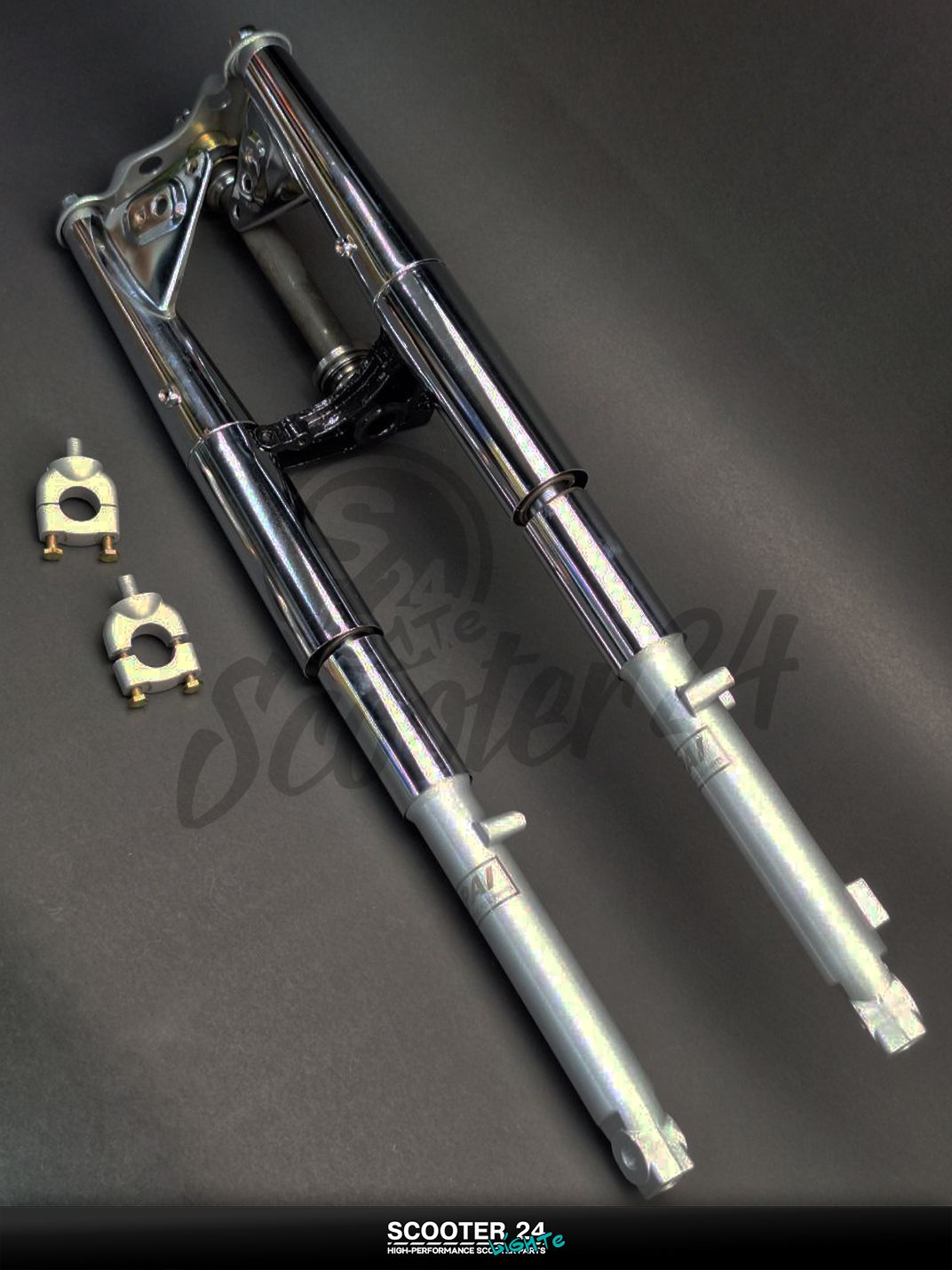 Передние амортизаторы (перья) с траверсой Delta d25 "LIPAI" для мопеда