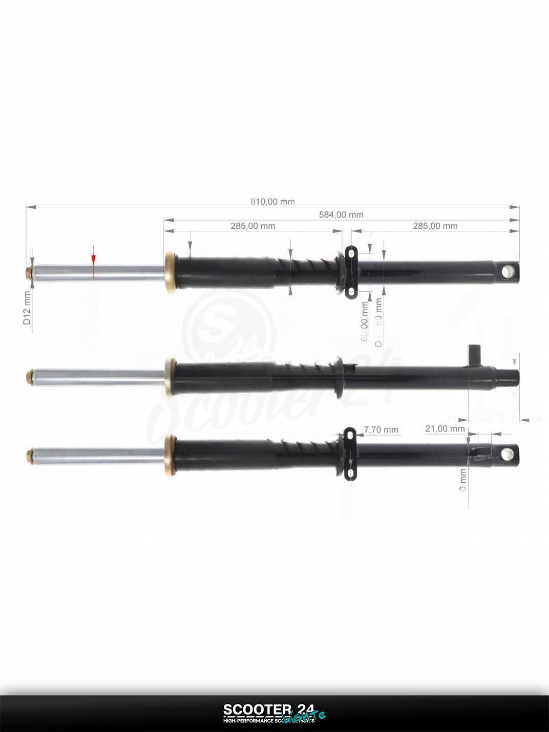 Передние амортизаторы (перья) от "LIPAI" для мопеда ZUBR с диаметром диска 31 мм и длиной 800 мм — идеальное решение для китайских скутеров с двигателями 139QMB и 157QMJ объемом от 50 до 150 куб.см. Эти амортизаторы обеспечивают великолепное поглощение ударов, улучшая комфорт и качество езды по неровным дорогам и в сложных условиях. Изготовленные из износостойких и долговечных материалов, они гарантируют стабильность управления и долговечность работы, что особенно важно для мопедов и скутеров, активно используемых в повседневной жизни.