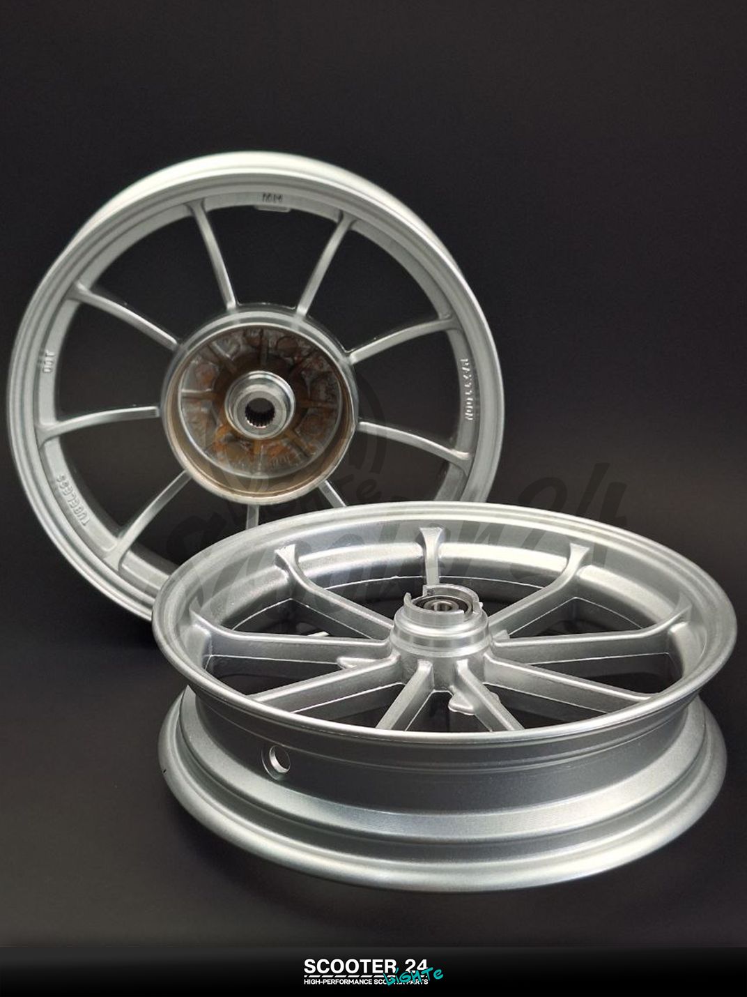 Диски колес пара на скутер Honda DIO / ZX AF - 28 / 35 / TACT AF 31 литые, 9 спиц Тюнинг (серебристые)