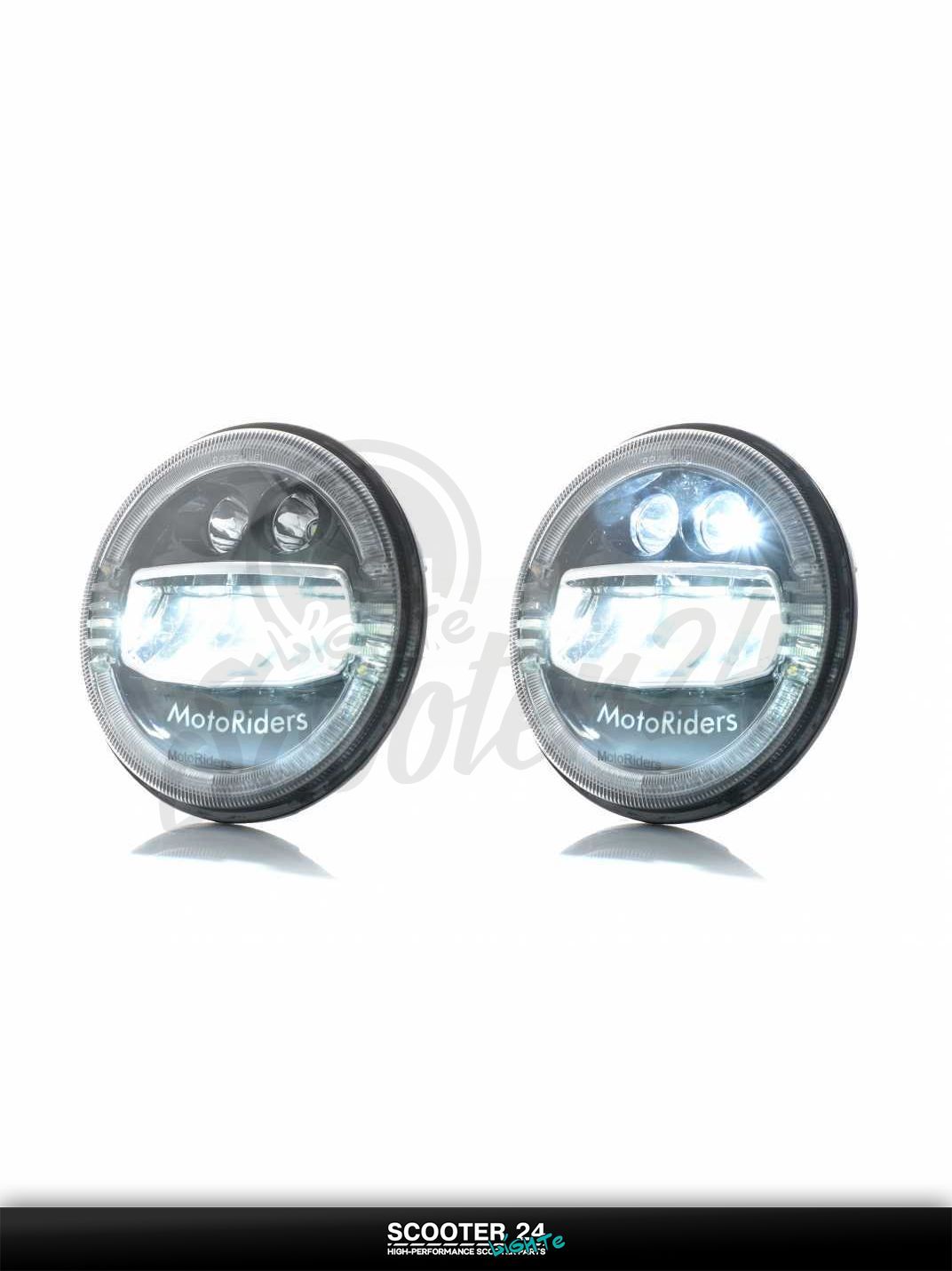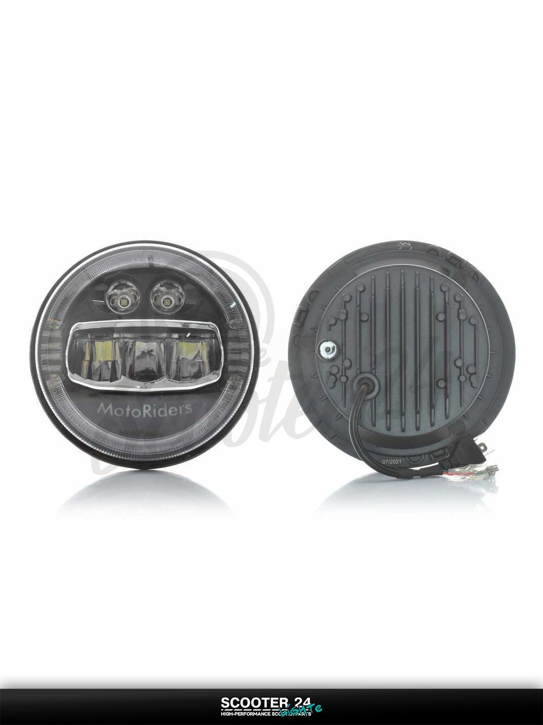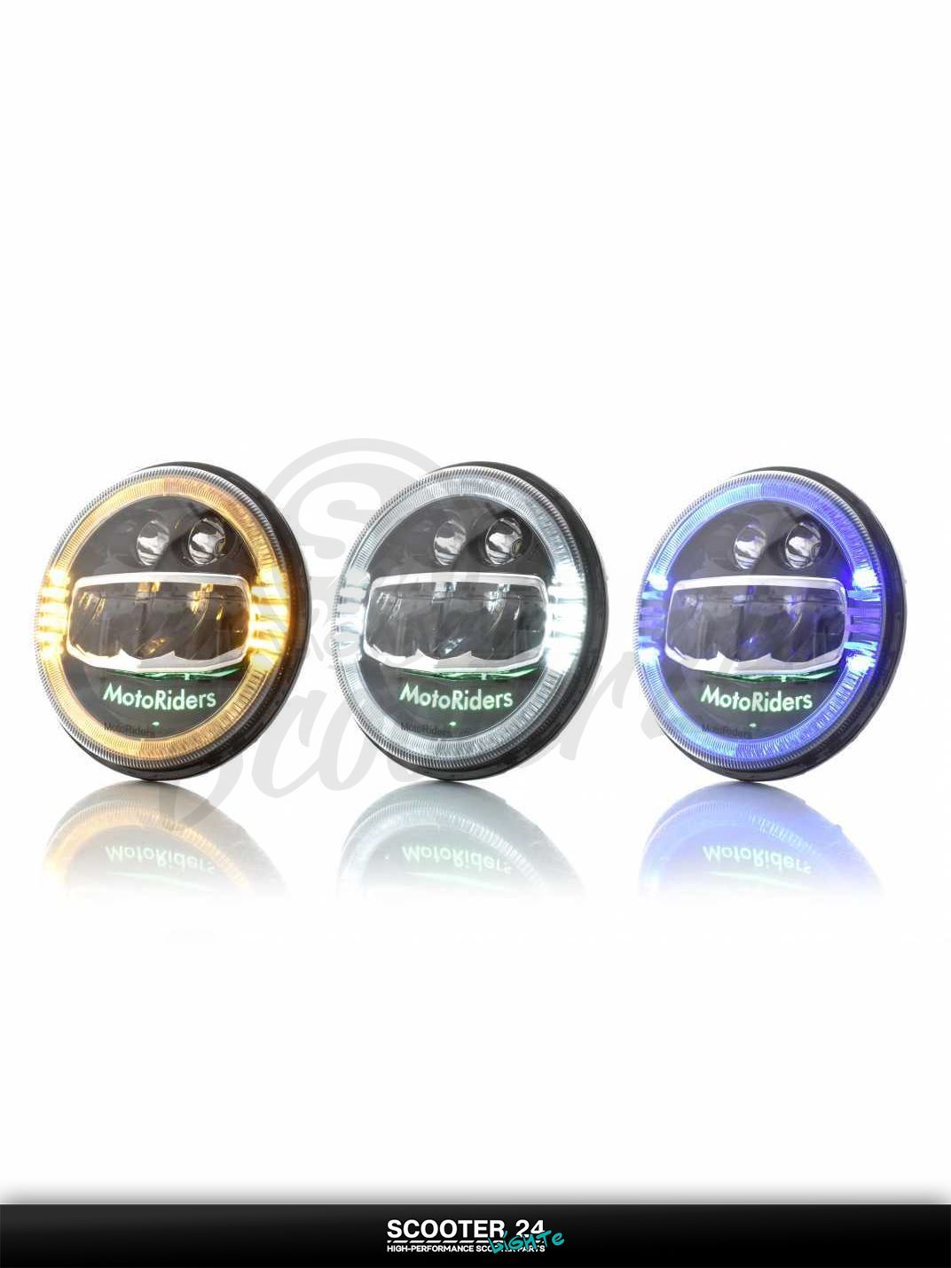 Фара мото диодная круглая D178 H4 3 габарита (белый/желтый/синий) C88-1S1 универсальная на мотоцикл / питбайк и скутер квадроцикл АШ4