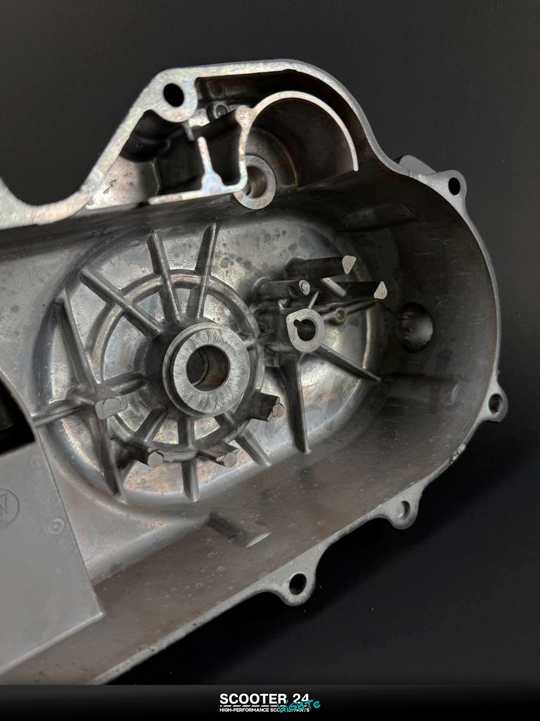 Прочная литая крышка вариатора для двигателей GY6 80 (139QMB/139QMA) с креплением на 10 болтов защищает ремень, вариатор, сцепление и стартерный привод от пыли и влаги, удерживает соосность узлов и снижает шум трансмиссии. Ровные плоскости и жесткая конструкция обеспечивают стабильную работу CVT и кикстартера, а корректная посадка под втулки/подшипники осей исключает перекосы и ускоренный износ. Отличный выбор, если нужно купить крышку вариатора на китайский скутер 80 кубов с «10-отверстным» картером.