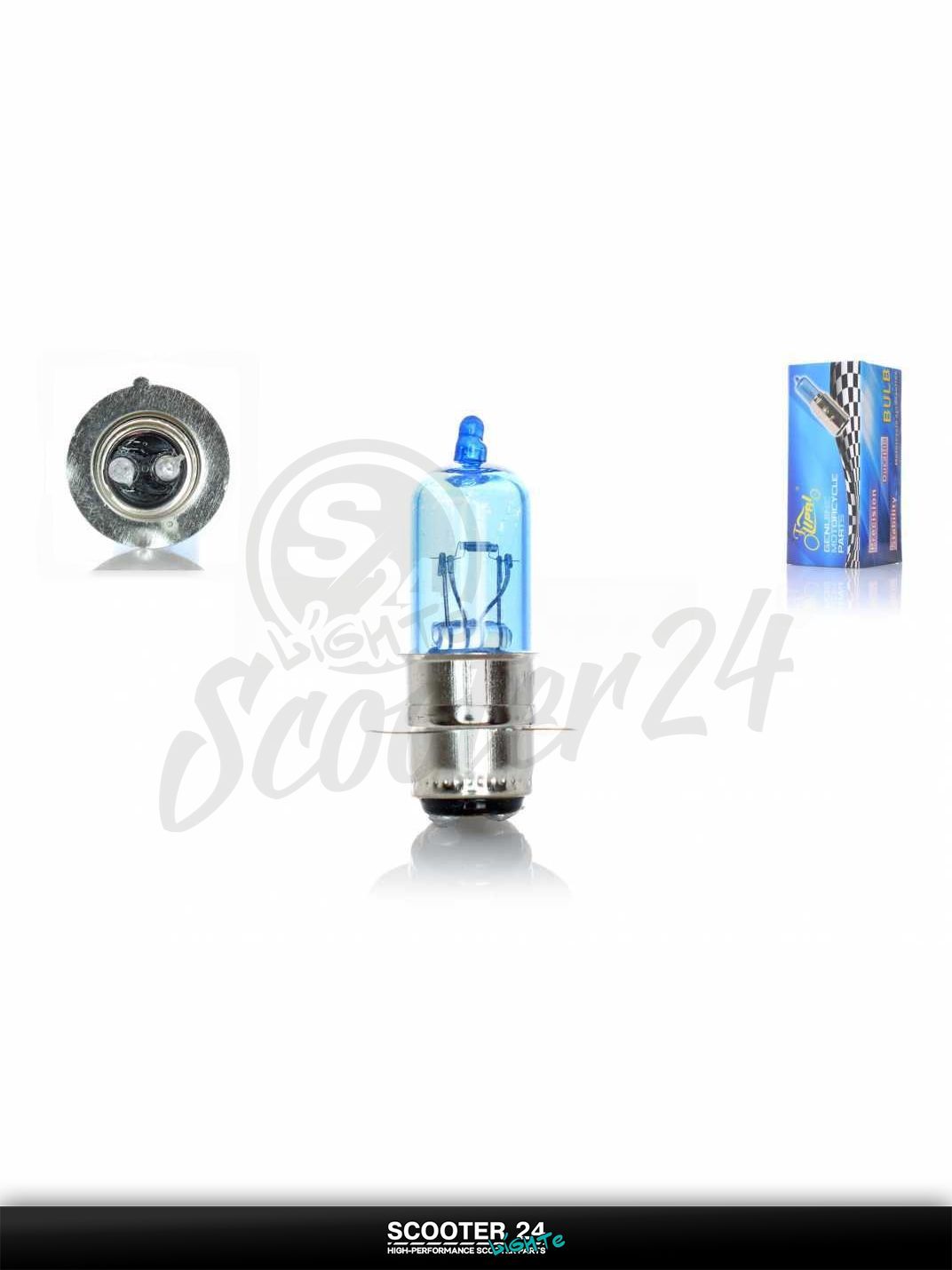 Лампа фары P15D - 25 - 1 12V25 / 25W синяя "LIPAI" (1 ус) на мотоцикл мопед / скутера и питбайк