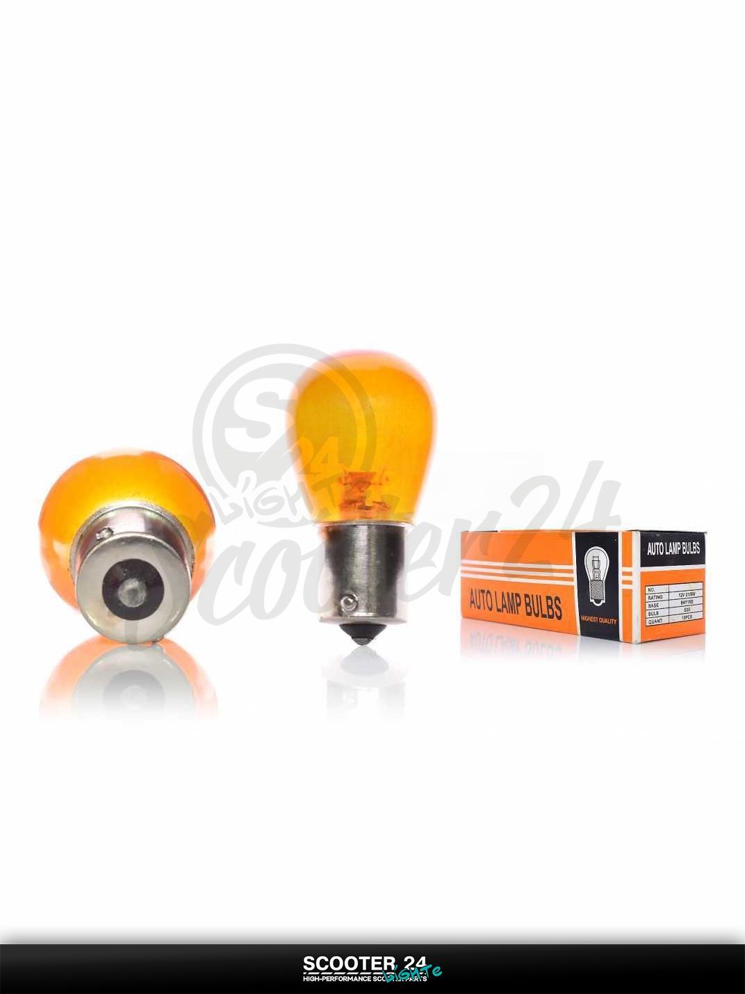 Лампа поворотов и габаритов BA15S 12V 21W оранжевая на мотоцикл мопед / скутера и питбайк