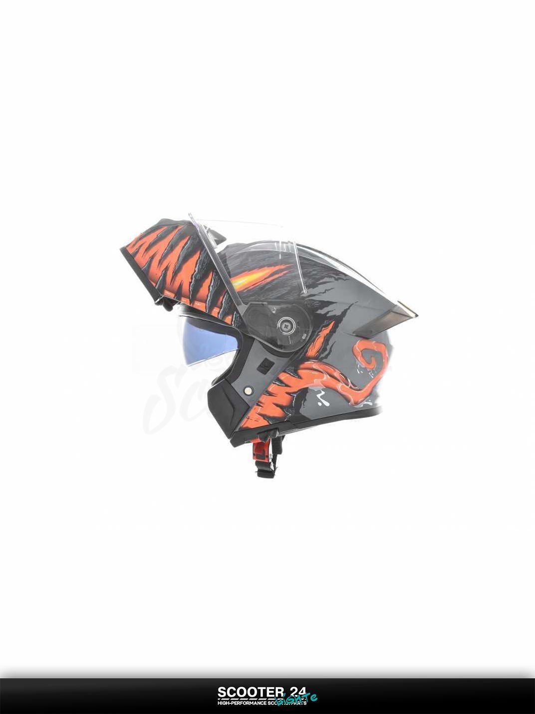 Описание товара: Мотошлем трансформер "IBK" в сером дизайне Venom с очками