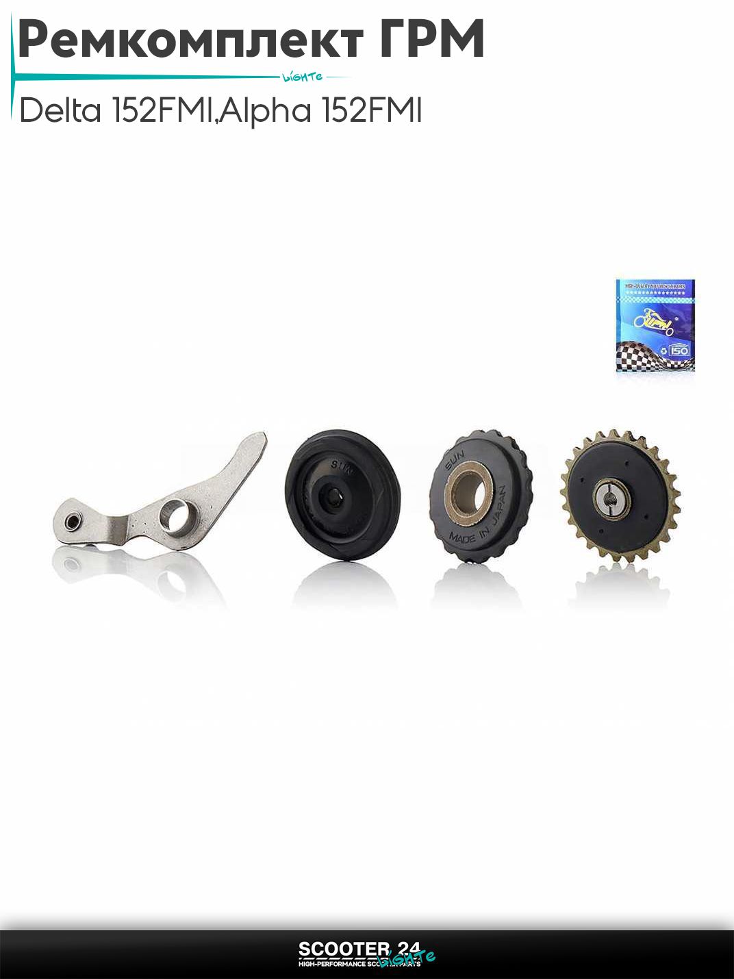 Ремкомплект ГРМ на мопед и мотоцикл Delta / Дельта с двигателем 152FMI, на мопед Alpha / Альфа Орион с двигателем 152FMI 3 ролика, рычаг "LIPAI"