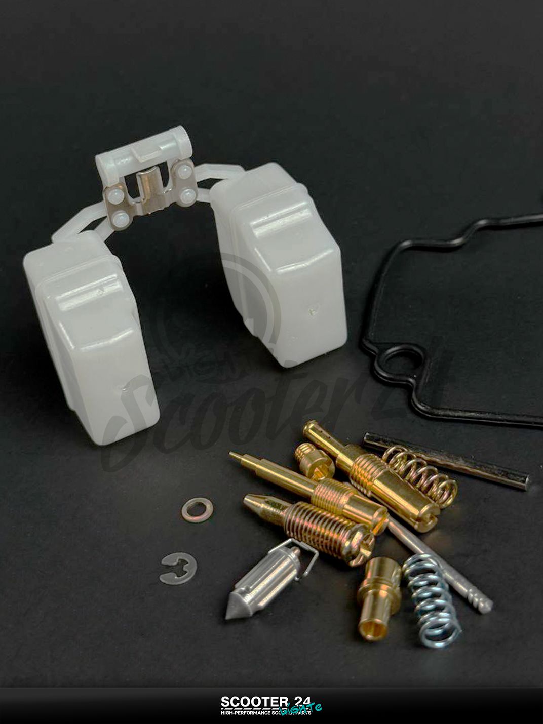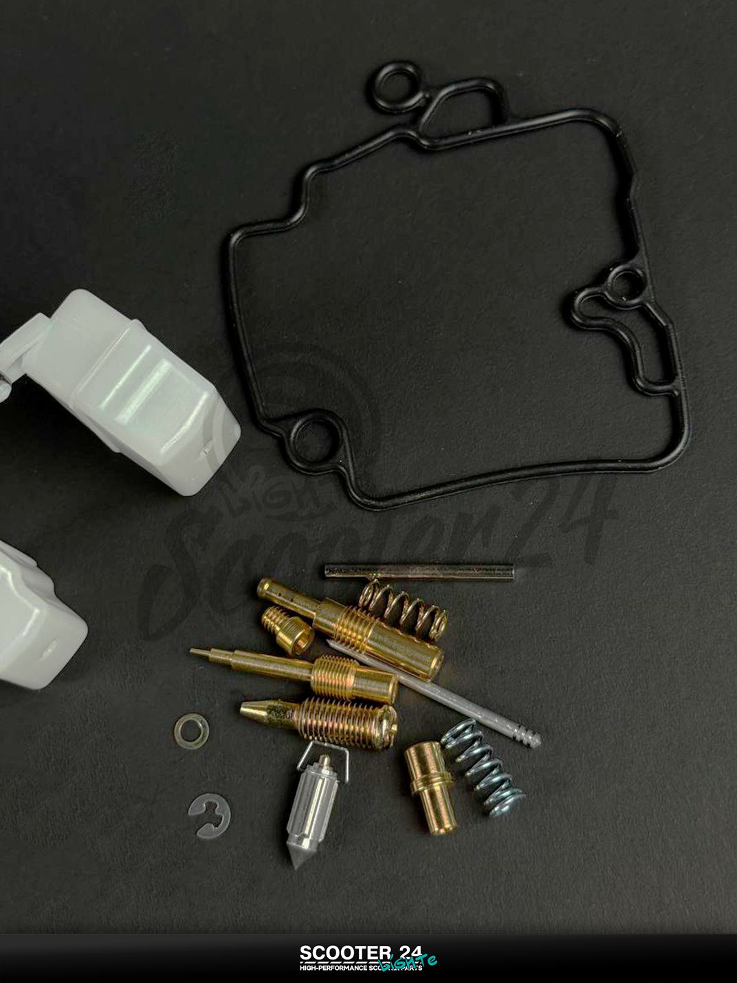 Ремкомплект предназначен для карбюраторов CVK на китайских скутерах/мопедах GY6 80 см³ (139QMB с увеличенным цилиндром). Набор расходников позволяет вернуть штатную герметичность и корректный уровень топлива: как правило, включает прокладки (чашки поплавковой камеры и крышек), уплотнительные кольца, игольчатый клапан (клапан отсечки) с седлом/клипсами, винт качества с пружиной/шайбой/уплотнением и жиклеры (основной/холостого хода) — мембрана в комплект не входит.