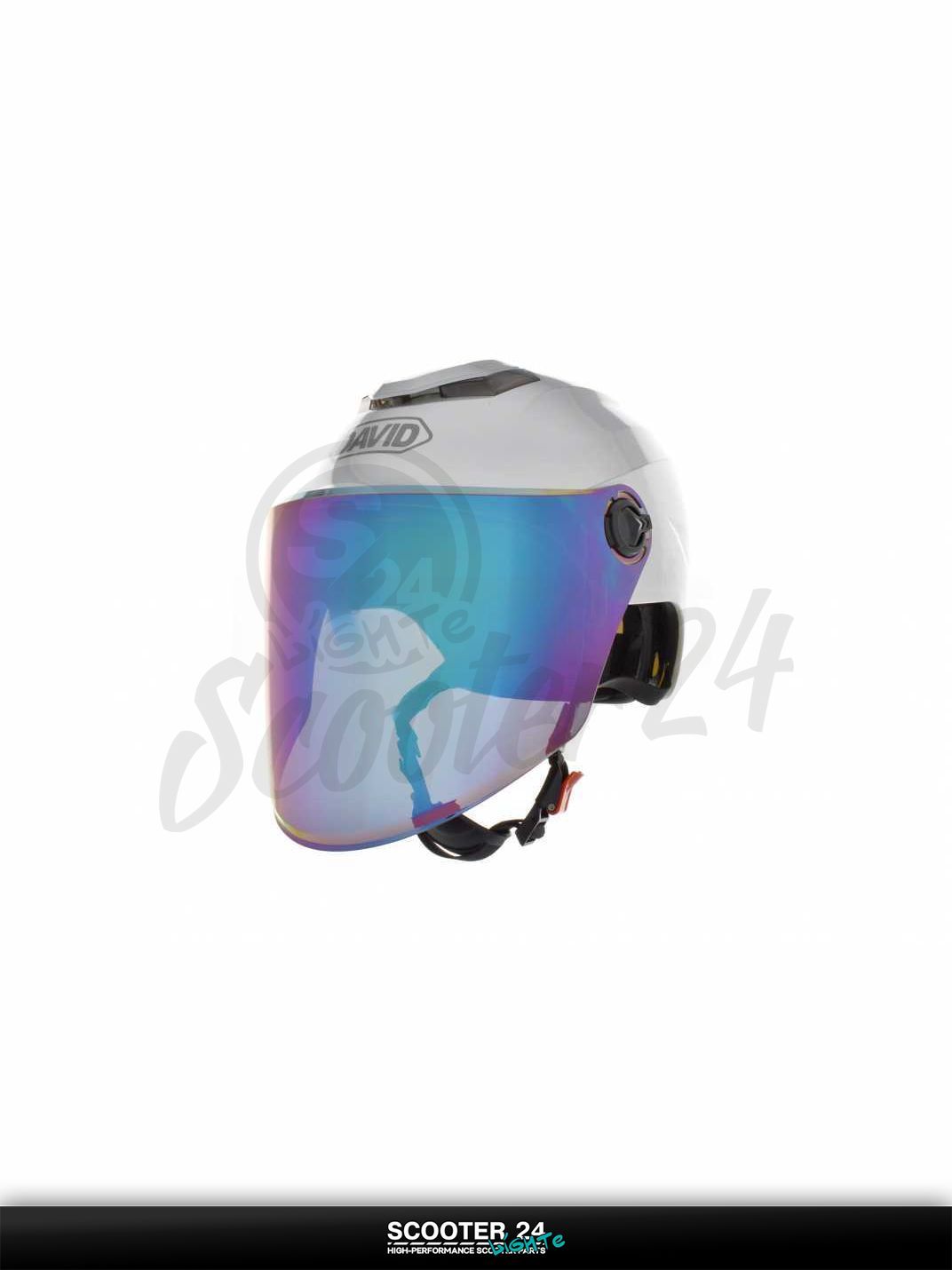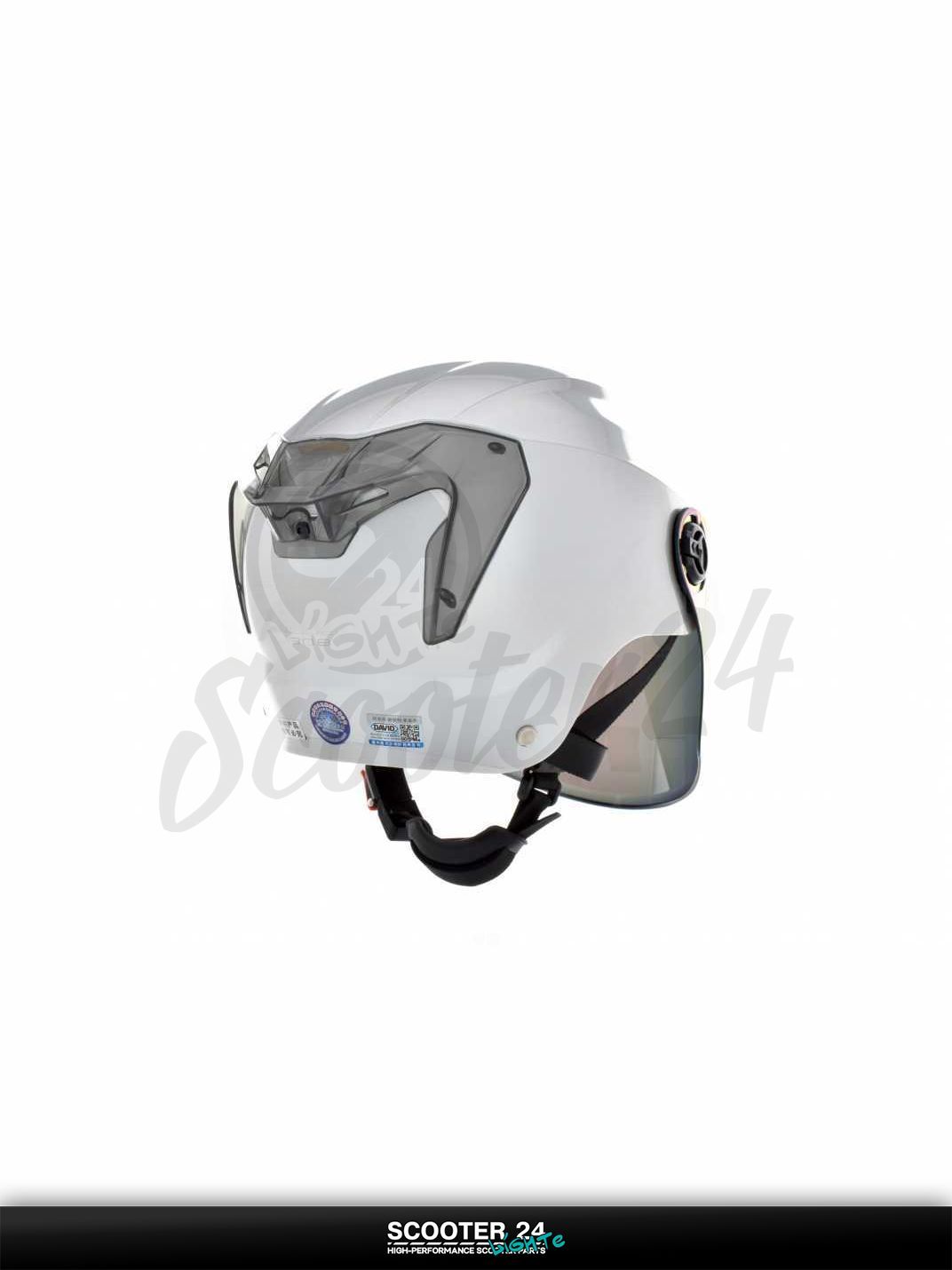 Шлем открытый (мото 50cc/вело/самокат) "DAVID" (#S308 серебристый глянец M-XL визор хамелион) мото / для скутера и питбайка / универсальный