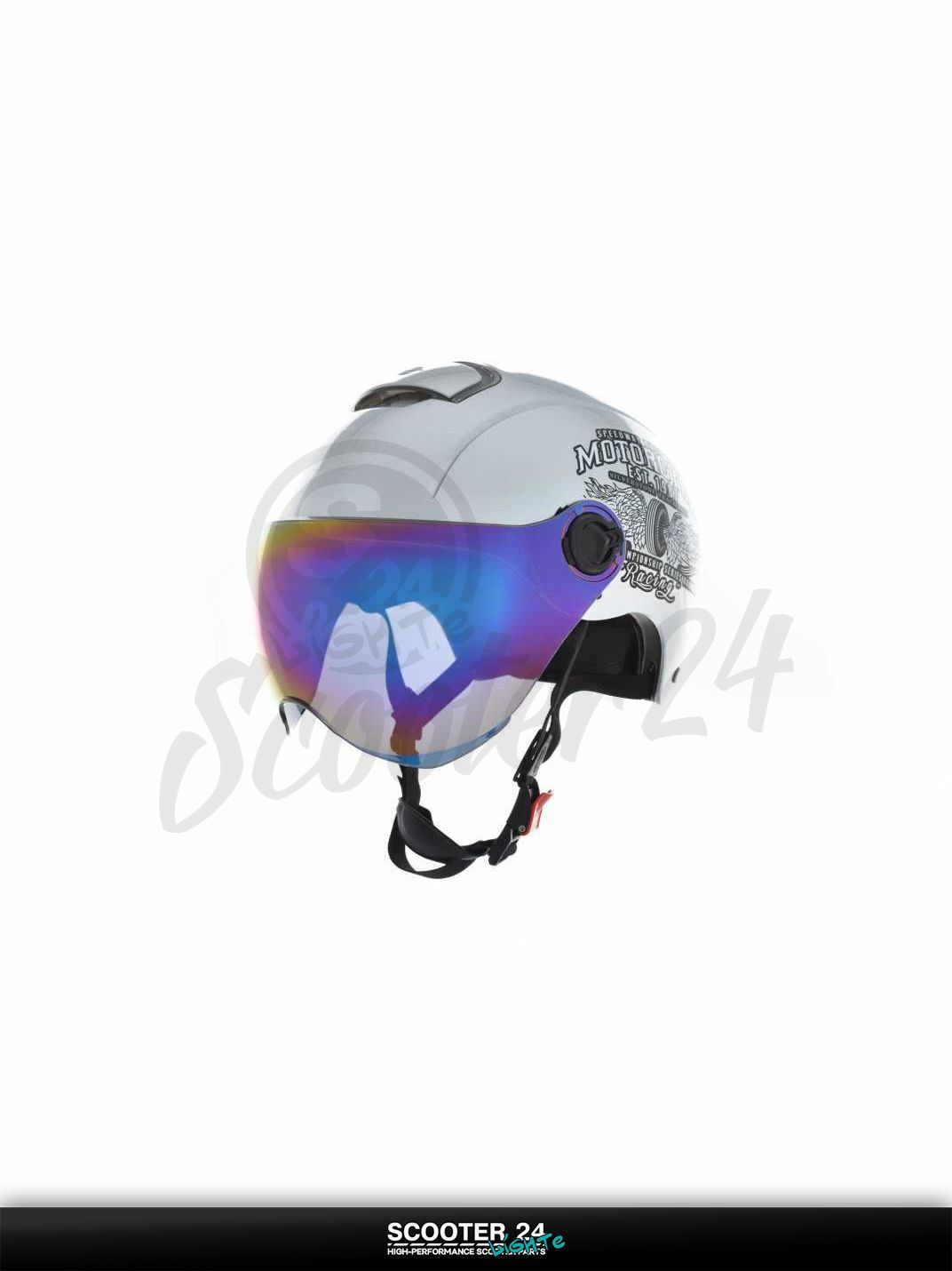 Шлем открытый (подростковый) "DAVID" (#S310C серебристый глянцевый M-XL ABS) мото / для скутера и питбайка / универсальный