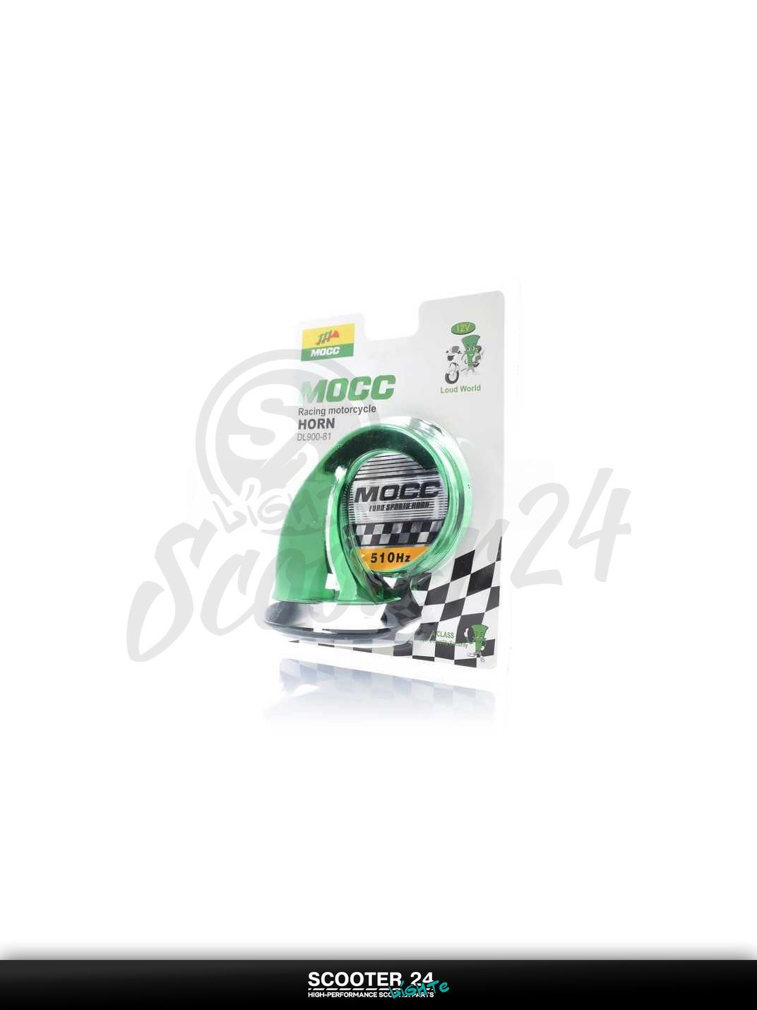 Сигнал 12V горн #900-81 "MOCC" (зеленый) на мотоцикл / мопед питбайк и эндуро / скутер квадроцикл тюнинг