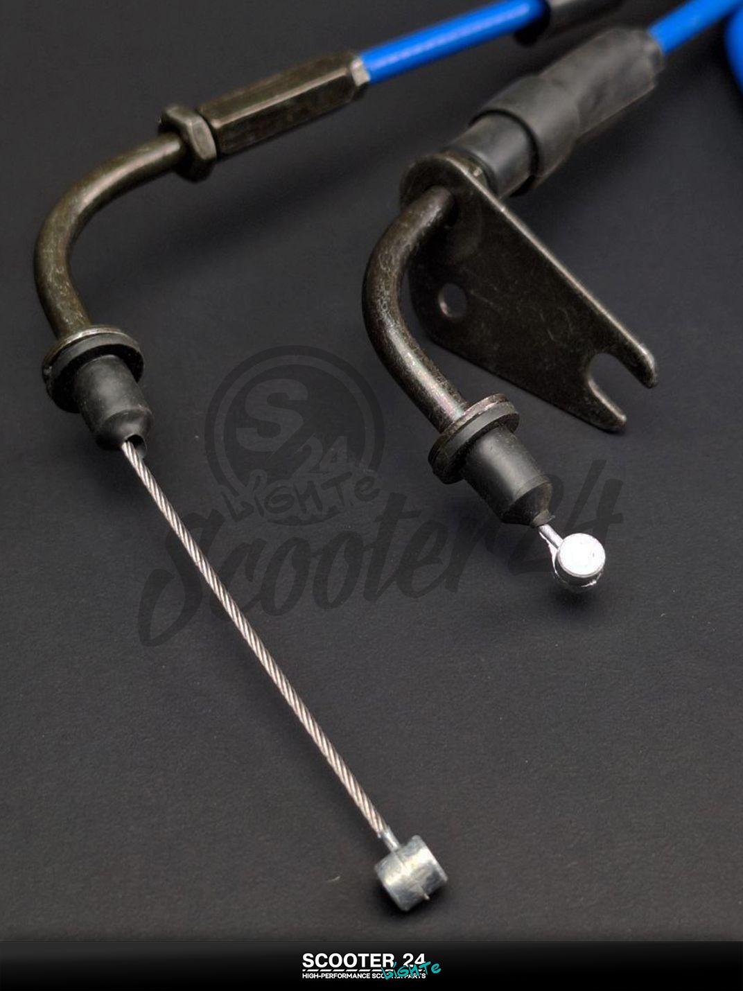 Трос газа на скутер Yamaha JOG 3YK NEXT ZONE / Ямаха Джог ЗР и Некст Зон горизонтальный 50-80 кубов 5BM #PRO "LIPAI" (нержавейка, синий)