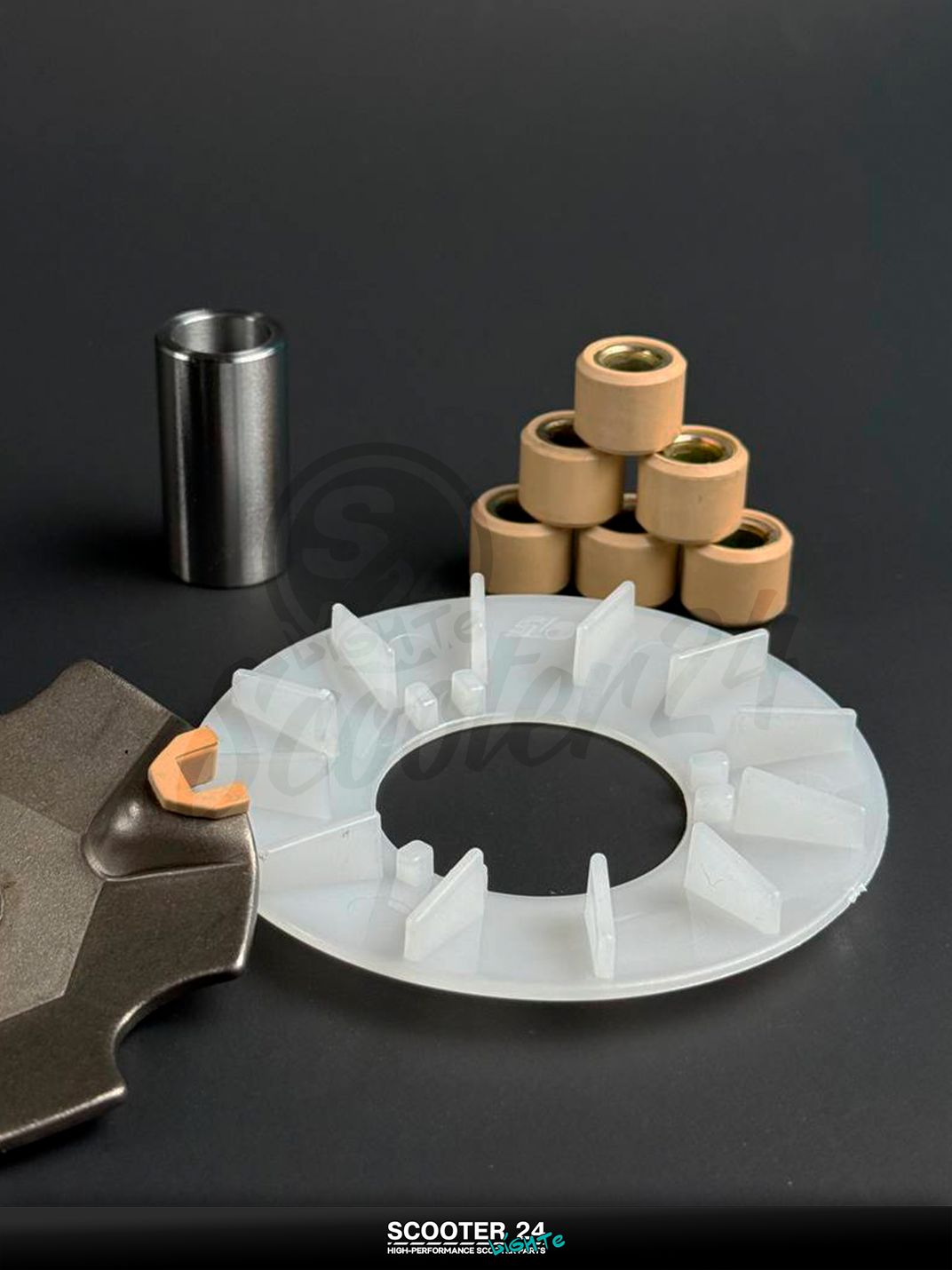 Передний вариатор "LIPAI" в сборе — готовое решение для восстановления тяги и разгона скутеров Honda DIO, Tact и Giorno семейств AF27/AF34. Точная геометрия дорожек и качественная обработка поверхностей обеспечивают ровный набор скорости без провалов, стабильные обороты и предсказуемую работу трансмиссии. Износостойкий сплав подвижной щеки и ресурсная втулка (палец) держат нагрузку городских стартов, а комплектная наружная щека обеспечивает корректное прижатие ремня и эффективное охлаждение.
