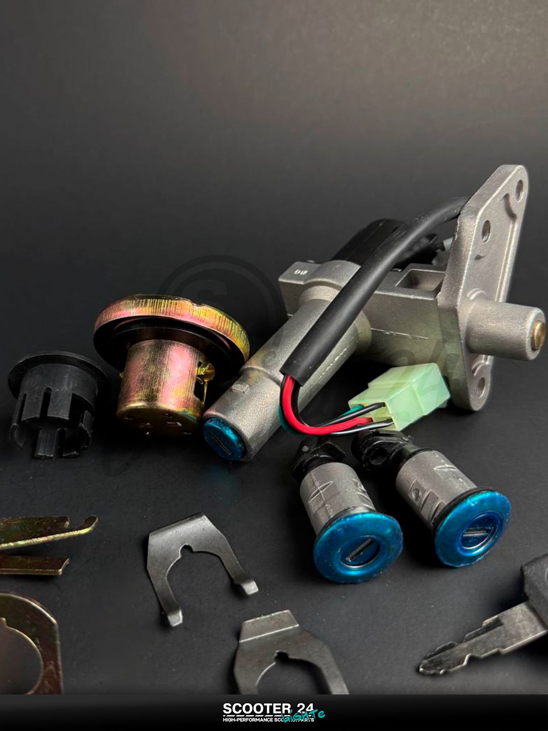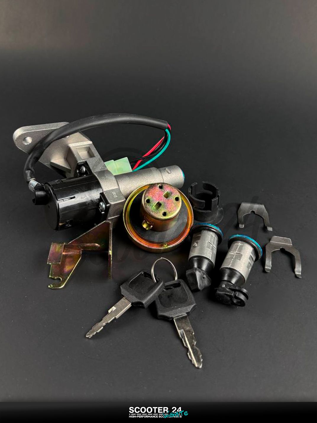 Комплект замка зажигания для скутеров на базе GY6 150 (157QMJ) включает замок, крышку топливного бака и 2 ключа, обеспечивая полное восстановление штатной системы без подбора разрозненных деталей. Надежная контактная группа дает стабильное питание и корректную блокировку, стальной сердечник личинки устойчив к износу, а крышка бака с уплотнителем защищает от протечек и испарений. Универсальная совместимость с большинством китайских моделей на платформе GY6 150 при совпадении разъемов и посадочных размеров.