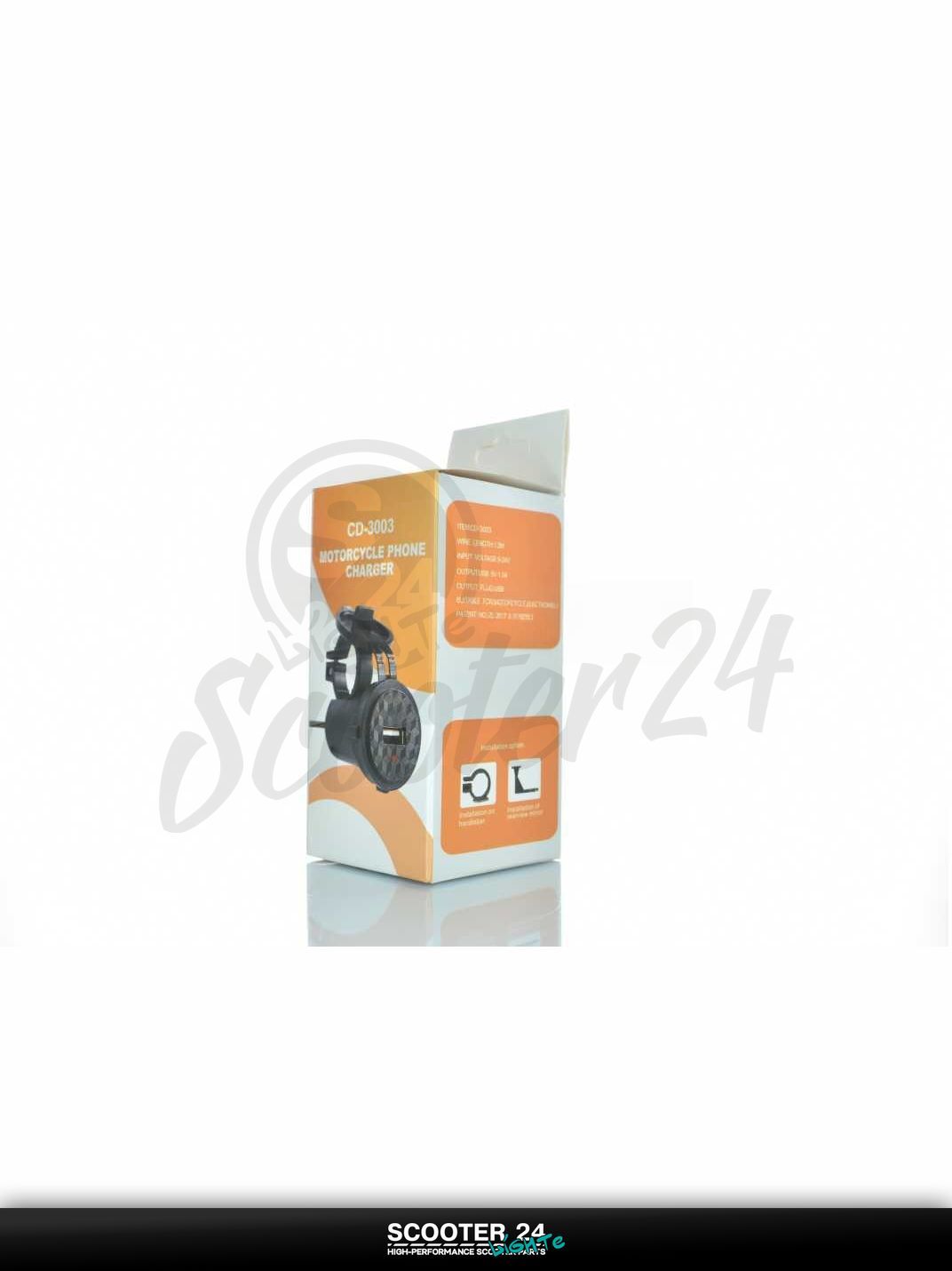 Зарядка выносная/врезная USB 9-24V, 1.5A #CD-3003 на мотоцикл мопед и скутер / эндуро / питбайк