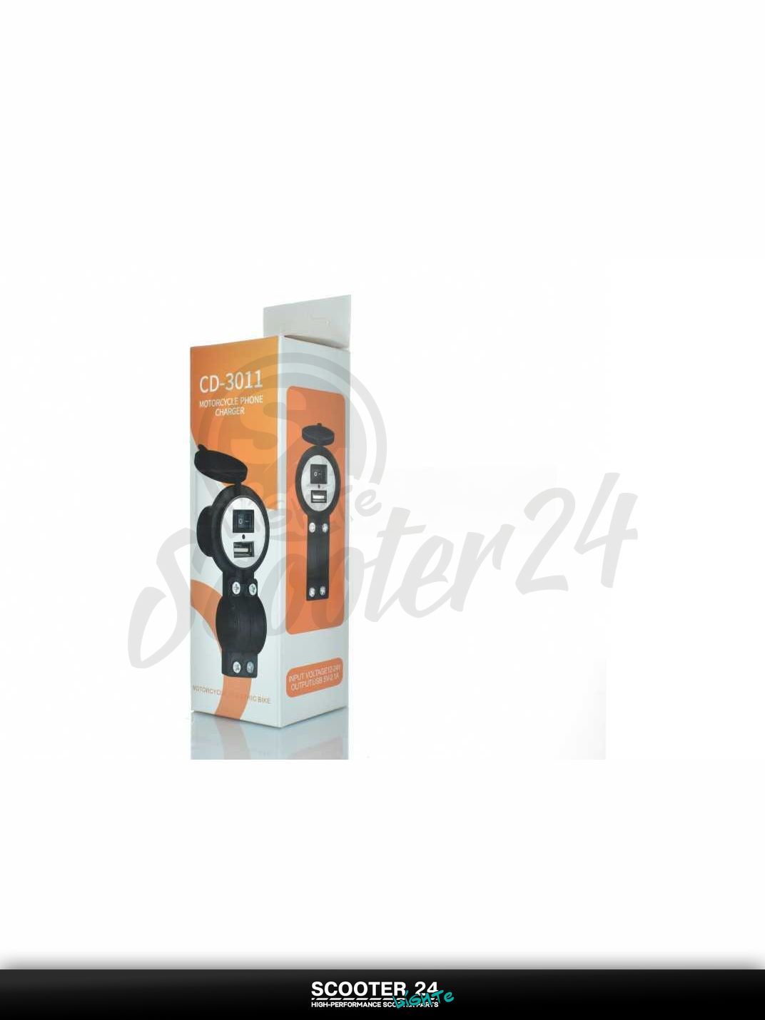 Зарядка выносная/врезная USB 12-24V, 2.1A #CD-3011 на мотоцикл мопед и скутер / эндуро / питбайк